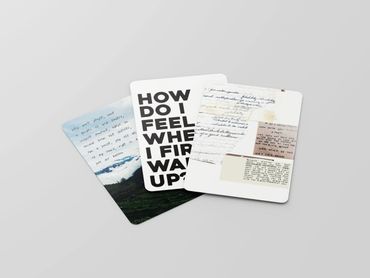Inspired by the act of self reflection, I designed a card deck. One side features a self-reflection question, and the other is a creative representation of my answer. The user is welcomed to do the same to benefit from the act of self reflection